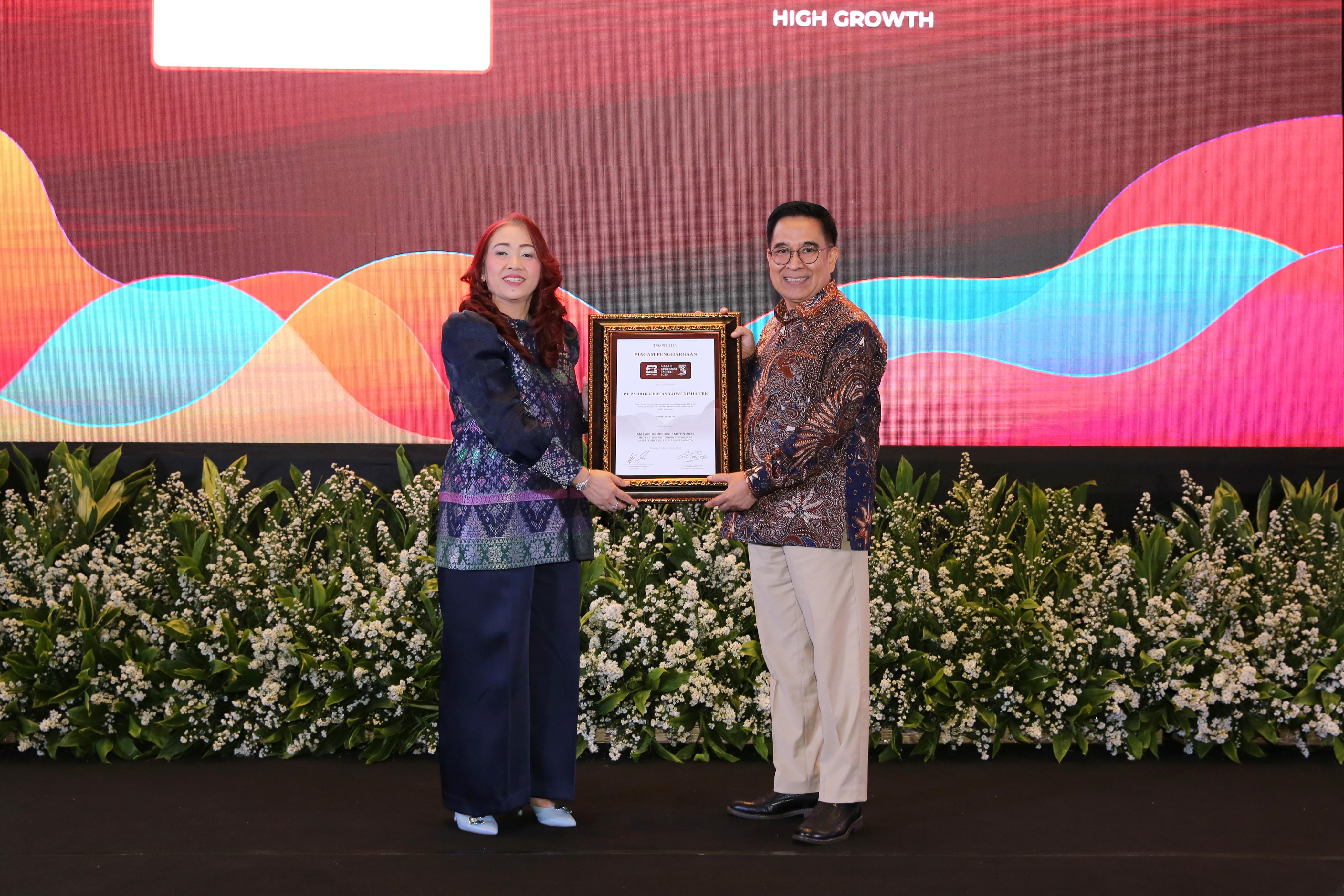 Two APP Group business units — PT Indah Kiat Pulp & Paper Tbk (INKP) and PT Pabrik Kertas Tjiwi Kimia Tbk (TKIM) — have been listed in the 2025 TEMPO–IDNFinancials52 Index. INKP earned recognition in two categories, High Growth and Big Market Cap, while TKIM was also acknowledged in the High Growth category.